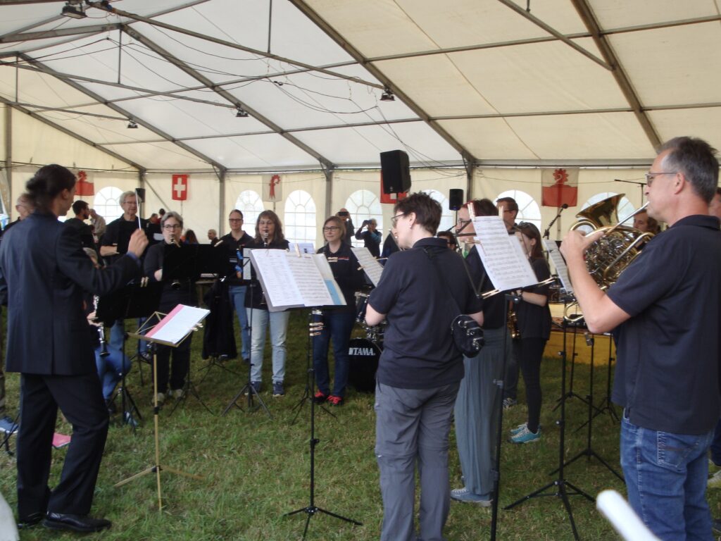 Gestern fand auf Sichtern die Bundesfeier statt, an welcher wir, wie jedes Jahr, einen kleinen Einblick in unser Repertoire gegeben haben.  Während der Stücke tanzten Kinder zu unserer Musik und manch eine Zuhörerin oder ein Zuhörer klatschte dazu.  Unseren Auftritt schlossen wir mit dem Schweizerpsalm ab, zu welchem die Leute aufstanden und mitsangen.  In diesem