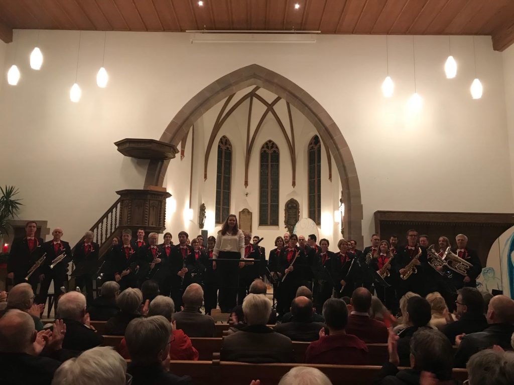 Am Sonntag des 1. Advents durften wir vor voller Kirche unser Programm präsentieren. Unter dem Motto «Feuer und Flamme» wurden die diesjährigen Stücke ausgewählt. Sie reichten von Klassikern wie «Music of the Royal Fireworks» von Georg F. Händel über die feurigen Rhythmen der «Fireworks Fanfare» von Raphael Strasser bis zum Vulkanausbruch mit «Terra Vulcania» von einem unserer Lieblingskomponisten, Otto Schwarz. Besonders magisch und stimmungsvoll war «Heaven’s Light», bei welchem die Melodien des Vibraphons sich mit den leichten Klängen der Holzbläser in der besonderen Akkustik der Kirche wundervoll ergänzten. Im kompletten Gegensatz dazu brachte «Fuege del Alma» – mit einem beeindruckenden Solo für Trompete von Marco Ruch – lateinamerikanisches Gemüt zum Ausdruck. Abgerundet wurde das Konzert mit einem besinnlichen «Stille Nacht, heilige Nacht» bei Kerzenschein.