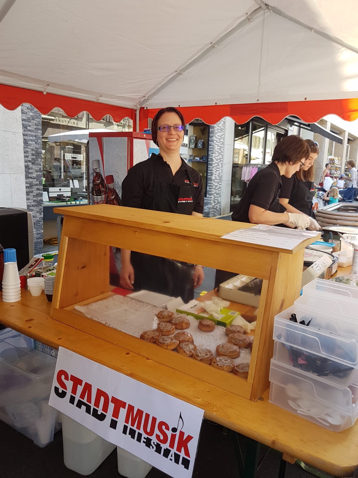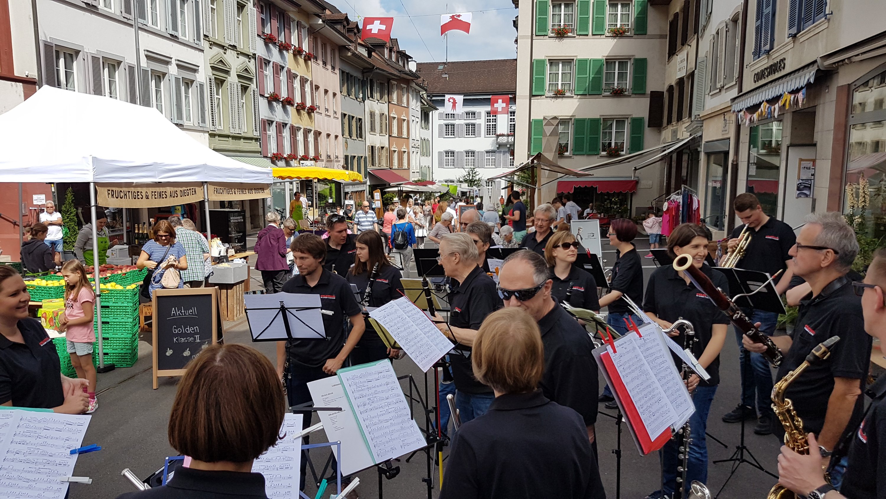 Seit einigen Wochen findet jeweils am Samstag im Stedtli in Liestal der Genussmarkt statt. Die Stadtmusik war dieses Mal mit Crêpes, Hefeschnecken und einem eigenen Stand auch mit dabei.