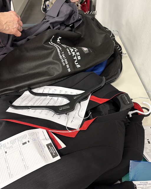 Aushilfen, die bei uns mitspielen, erhalten für den Auftritt eine Uniform oder einzelne Teile aus der Reserve. Ich bringe verschiedene Grössen zum Probieren mit und dokumentiere anschliessend, wer was ausgeliehen und wieder zurückgegeben hat.
