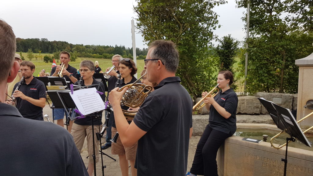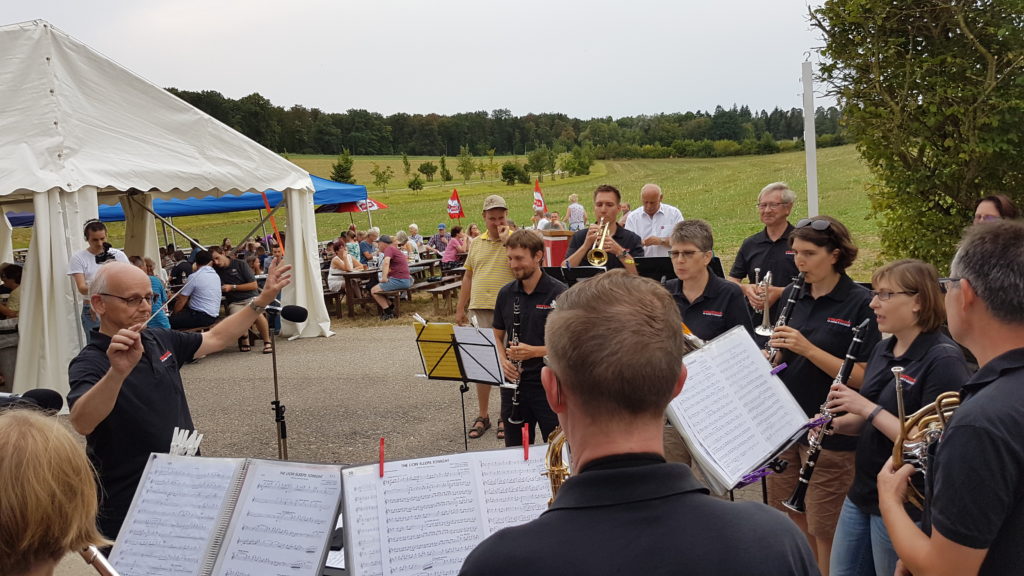 Dieses Jahr durfte Thomas Imhof, unser Vizedirigent, den Takt angeben. Wir unterhielten das Publikum mit Klassikern aus unserem Repertoire, «The Lion Sleeps Tonight» zum Beispiel, und auch mit Stücken vom Unterhaltungskonzert mit der RJBL wie «Brazil», «ABBA Gold» oder «Supertramp». Den Zuhörerinnen und Zuhörer gefiel es scheinbar sehr gut, denn nach der Schweizerhymne durften wir als Zugabe den Baselbieter Marsch spielen, bei welchem alle kräftig mitgesungen haben.