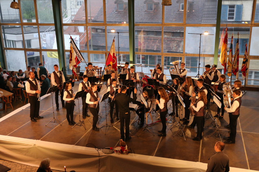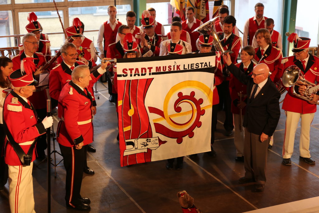 Seit langer Zeit hat die Stadtmusik darauf hin gefiebertund nun war es soweit, ihre neue Uniform und die neue Fahne konnten präsentiert werden. Eine solche Neuuniformierung ist immer etwas ganz Besonderes: So empfing die Stadtmusik am frühen Samstagabend ihre Gäste noch in altem Gewand, in rot-weisser Uniform mit Epauletten und Federbusch auf dem Hut in der alten Ziegelhof Abfüllhalle.