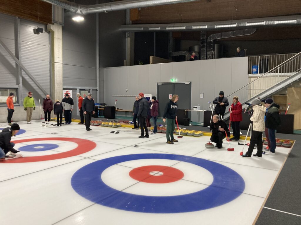 Am Weihnachtshock letzten Donnerstag versammelten sich die Mitglieder der Stadtmusik bei der Kunsti Sissach. Der erste Punkt auf dem Programm war Curling. Nach einer eher kurzen Einführung und den ersten Ausrutschern starteten auch bereits die ersten Spiele. Neben Punkten für die Teams, mehr Zufall als Können, gab es auch weitere Stürze auf dem rutschigen Untergrund.