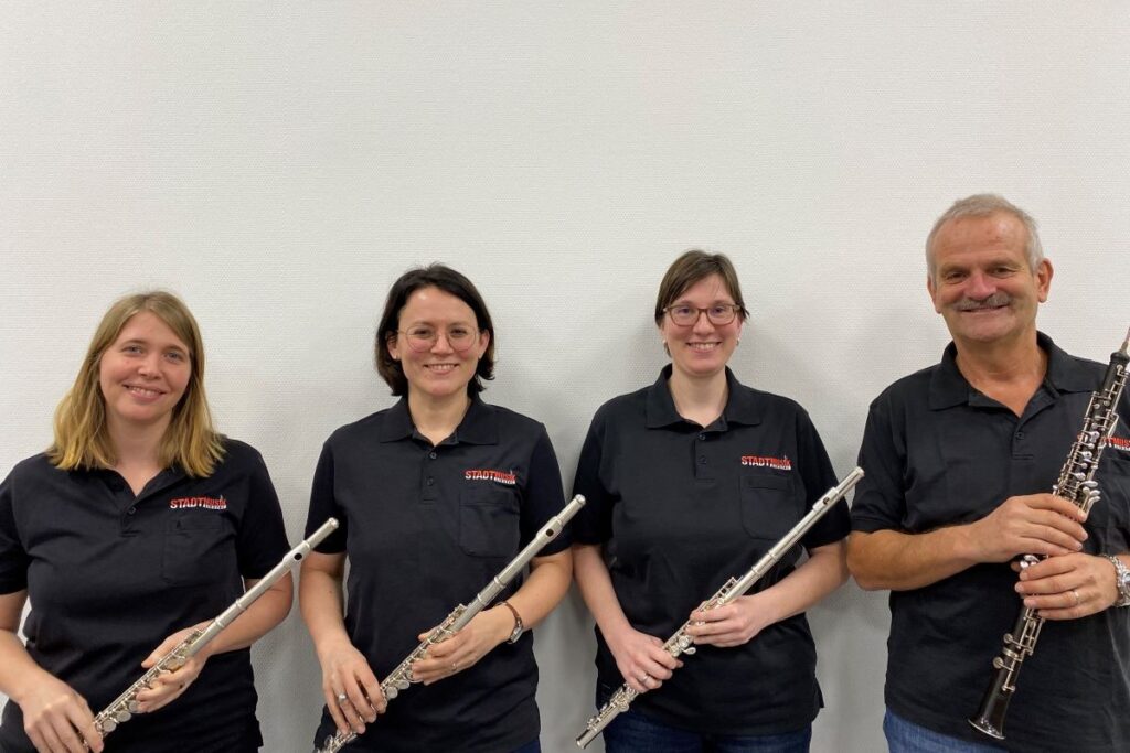 Die Querflöte zählt zu einem der ältesten Instrumente überhaupt. Früher bestand die Querflöte aus Holz, weshalb sie auch heute noch zu den Holzblasinstrumenten zählt. Gemeinsam mit der Oboe, die ebenfalls ein Holzblasinstrument ist, sind die Flöten für die höchsten Passagen in einem Stück zuständig. Die kleine Schwester der Flöte ist das Piccolo. v.l.n.r.: Sibylle Pfeil,