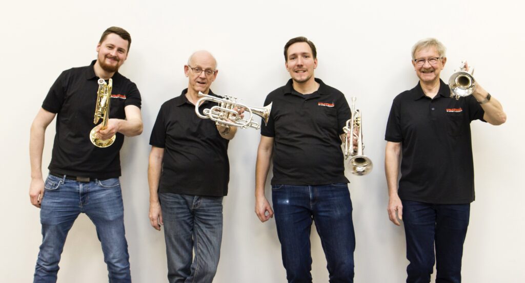 Als Nächstes stellen wir euch das Register des kleinen Blechs vor. Zum kleinen Blech zählen hohe Blechblasinstrumente, namentlich Trompeten, Cornetts und das Flügelhorn.Alle drei Instrumente setzen sich zusammen aus langen gebogenen Rohren, auf denen ein Mundstück befestigt ist, sowie drei Ventilen. Das kleine Blech produziert jede Menge Sound. Eine Trompete könnte – wenn es sein